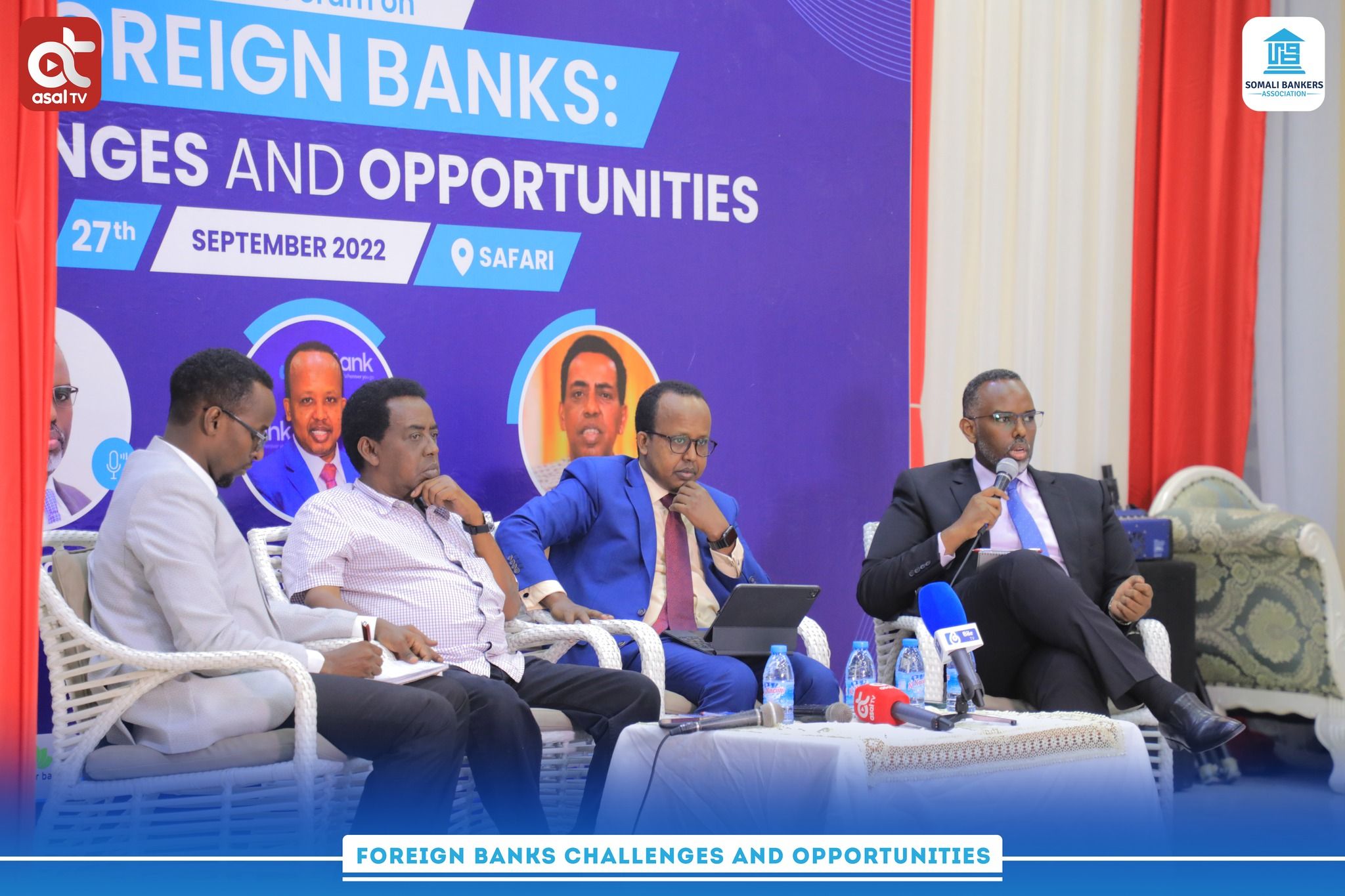 Thursday , 29, Sep ,2022 : SBA, the umbrella body of Somalia’s financial Institutions on Tuesday 27, Sep 2022, held its biggest and first corporate forum on Foreign Banks. Sominvest director Mohamed Dubo MyBank CEO Abdulrazak M. Ahmed and senior economist Prof. Yahye Amir were on stage to offer their insights on the arrival of foreign Banks in the country.